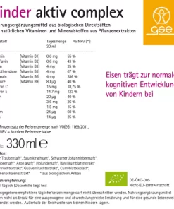 GSE v svojem izdelku Kinder Aktiv Complex uporablja naravne vitamine in minerale iz ekoloških rastlinskih izvlečkov. Izvleček listov bazilike, plodov amle ter plodov guave in izvleček listov curryja zagotavljajo pomembne vitamine B B1, B2, B3, B5, B6 in B9 ter naravni vitamin C, vitamin E, biotin, železo, cink, krom in selen. V kombinaciji s šestimi dragocenimi ekološkimi neposredno pridobljenimi sokovi iz soka rdečega grozdja, višnje, črnega ribeza, robide, aronije in bezga je Kinder Aktiv Complex naravno in okusno prehransko dopolnilo. Kinder Aktiv Complex je nesladkan in vsebuje le naravno fruktozo iz ekoloških sadnih sokov.