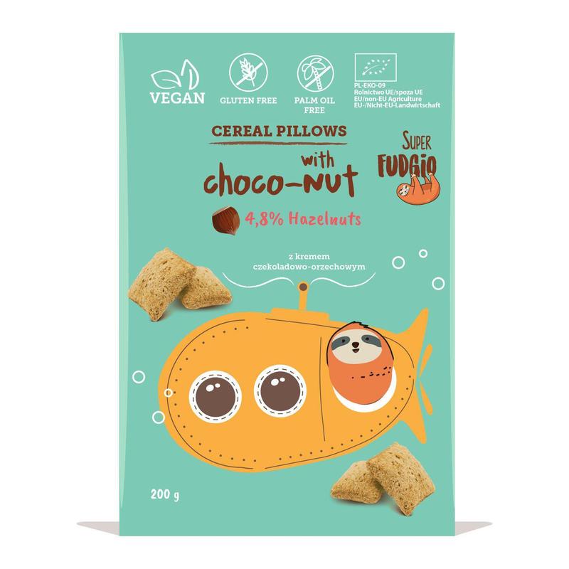 Žitni del 60%: riževa moka *, koruzni zdrob *, kokosov sladkor *, emulgator: sončnični lecitin *. Čokoladno-lešnikov nadev 40%: trsni sladkor *, kokosov prah *, lešnikova pasta * (12%), sončnično olje *, kakavovo maslo *, kakijev prah z zmanjšano maščobo *, emulgator: sončnični lecitin *, naravni okus.