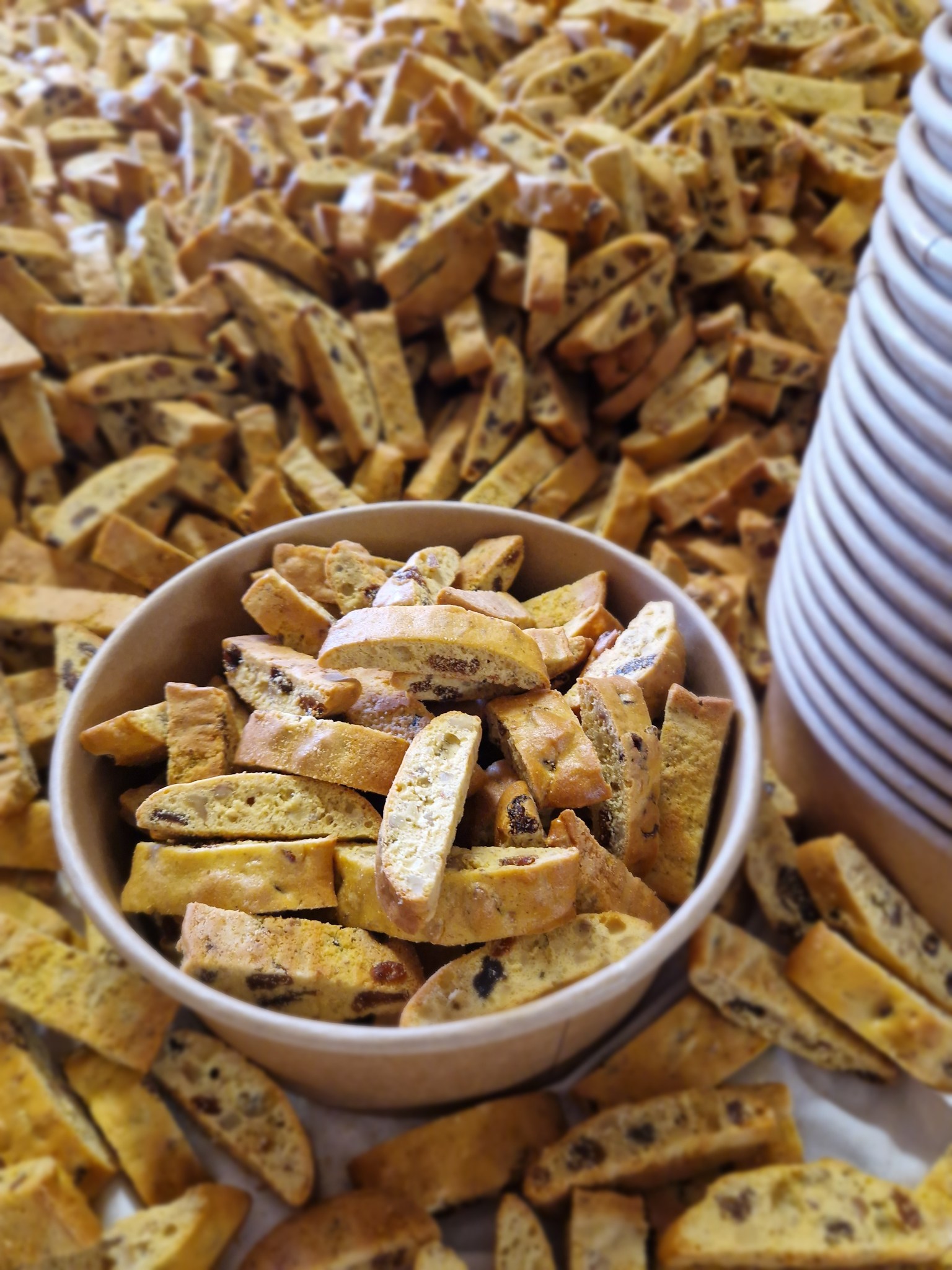 Sestavine: pšenična moka TIP 500,sladkor, orehi, rozine, jajca.