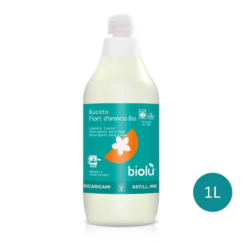 Tekoči detergent s cvetovi pomarančevca iz skupine Biolu globinsko očisti vlakna in zapusti prijetno osvežujoč vonj cvetov pomarančevca.