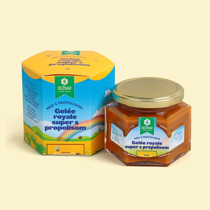 Prehransko dopolnilo Gelée royale super s propolisom je med, obogaten s cvetnim prahom, matičnim mlečkom in propolisom. Ne vsebuje konzervansov, sladil, barvil in umetnih arom.
