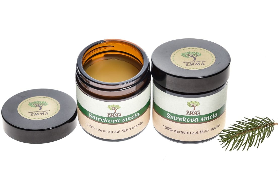 Naravno smrekovo mazilo EMMA je izdelano iz ročno nabrane in prečiščene slovenske smrekove smole. Smrekova smola se v tradicionalnem zdravilstvu uporablja za vrsto obolenj, kožnih poškodb, vnetij, bolečin v mišicah in sklepih. Na mesto kamor nanesemo smrekovo mazilo, le to pospeši prekrvavitev kože. Slednje podpira sposobnost obnavljanja kože, izboljšuje obrambni mehanizem kože in spodbuja njeno delovanje. Mazilo je sestavljeno iz le petih sestavin, pa je vendar ali ravno zaradi tega izjemno učinkovito. Ima prijeten smolnat vonj, je brez konzervansov, barvil in dišav.