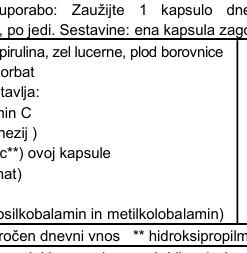 Navodila za uporabo: Zaužijte 1 kapsulo dnevno s kozarcem vode, po jedi.
