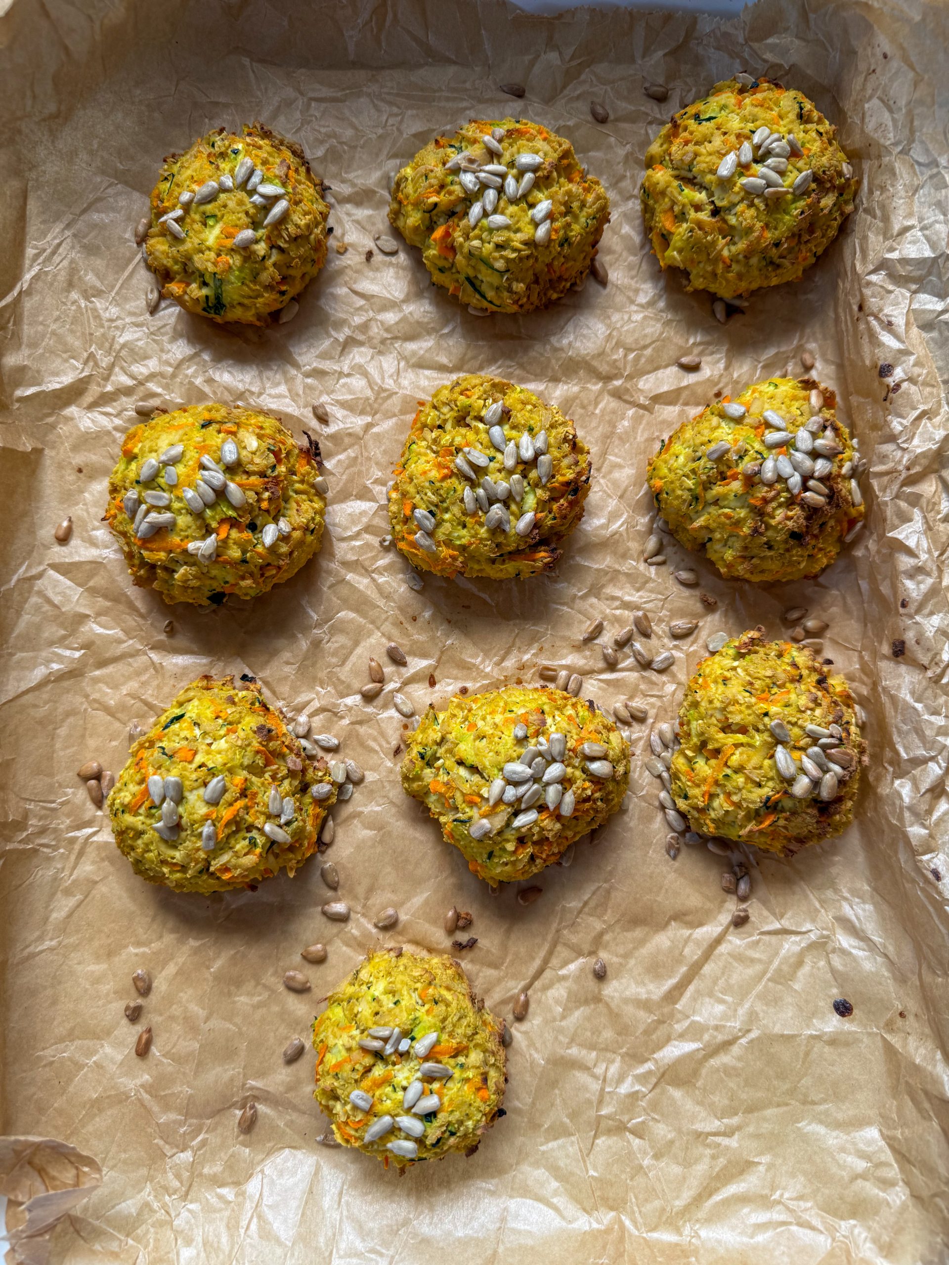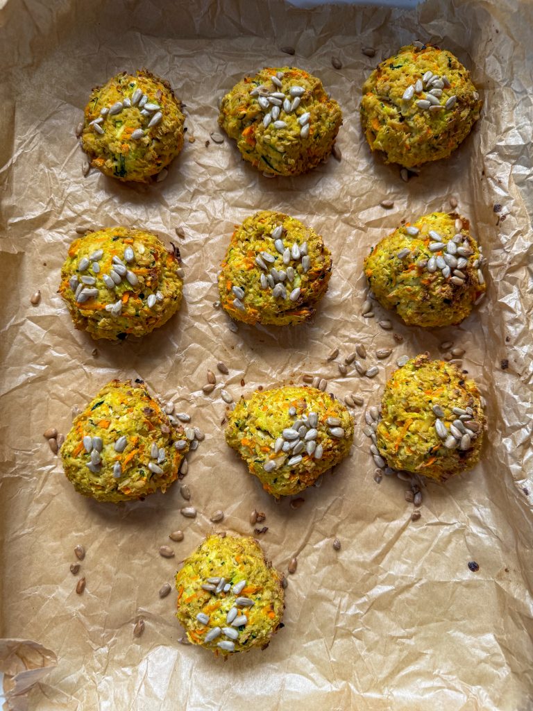 - Polpete po vrhu okrasimo s sončničnimi semeni in jih pečemo v ventilatorski pečici na 180C, cca. 25min od do zlato-rjave barve.